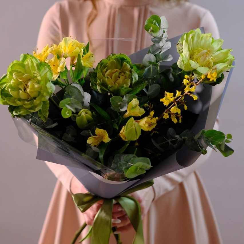 Важно! В случае отсутствия необходимых цветов состав букета определяется флористом на свое усмотрение с сохранением цветовой гаммы, фактуры и стилистики букета в соответствии с Положением. Если у Вас есть особые пожелания, пожалуйста, согласуйте их с флористом по телефону 8 (909) 119-119-2 или с помощью онлайн-консультанта.