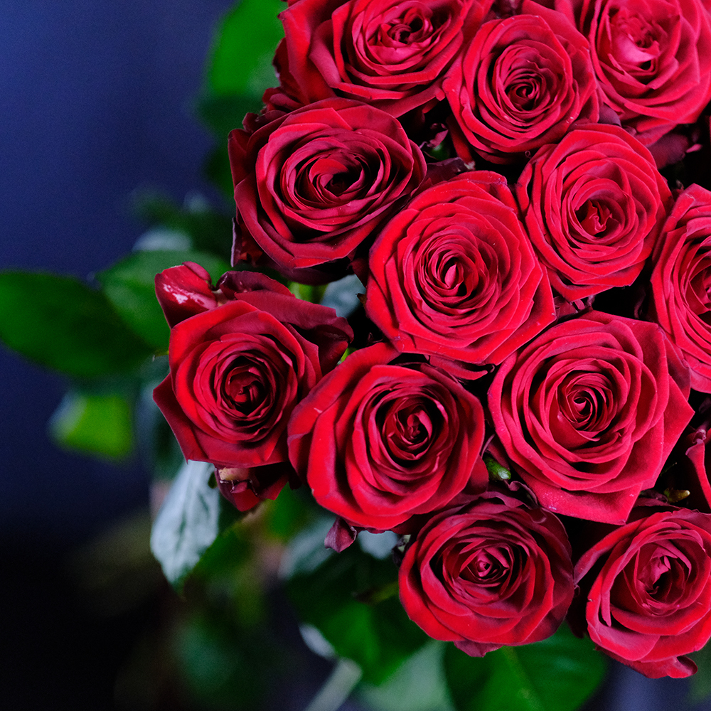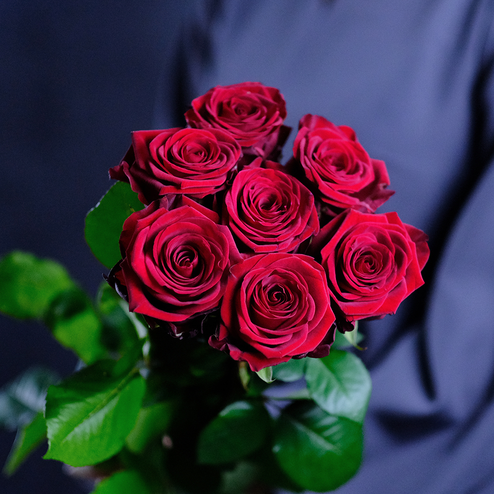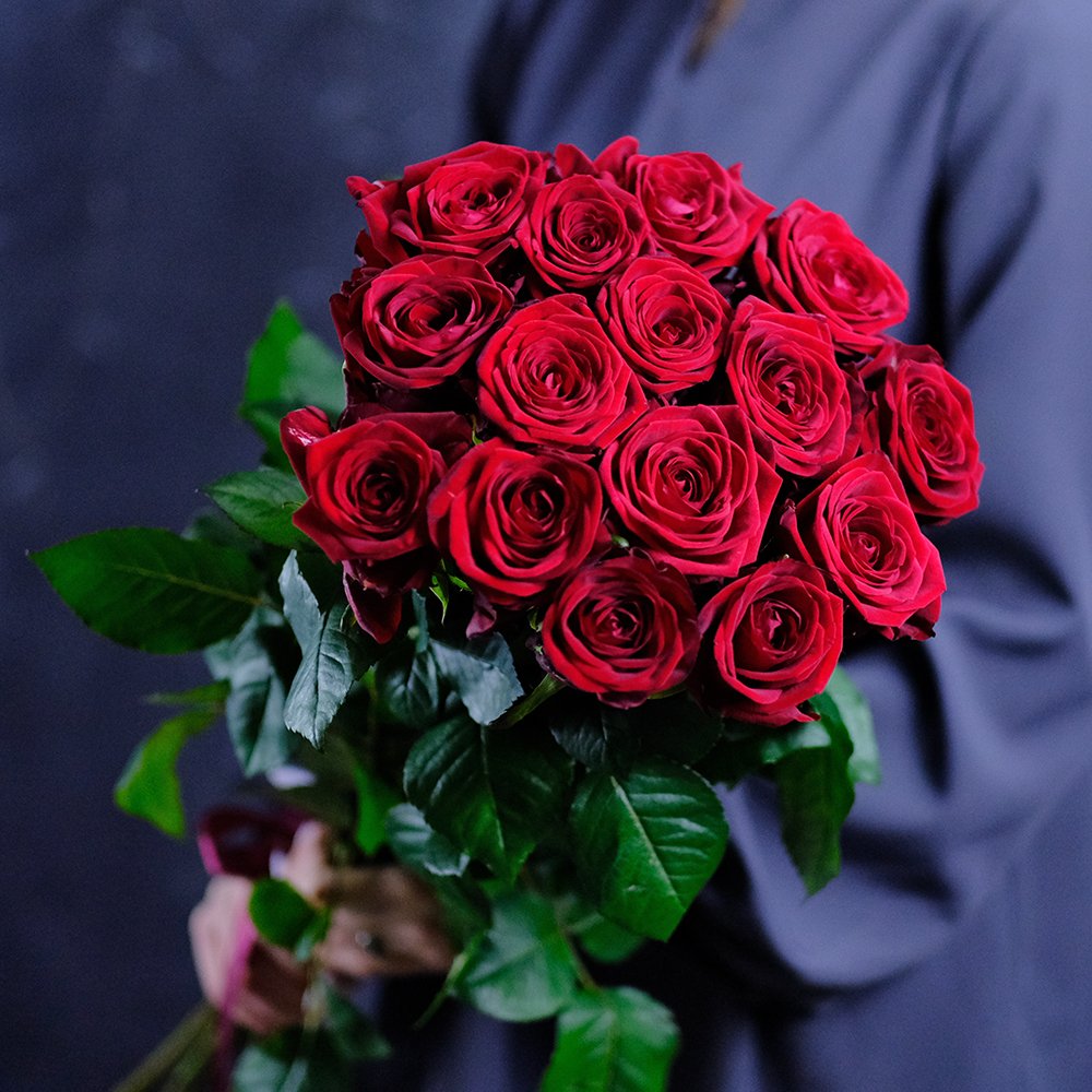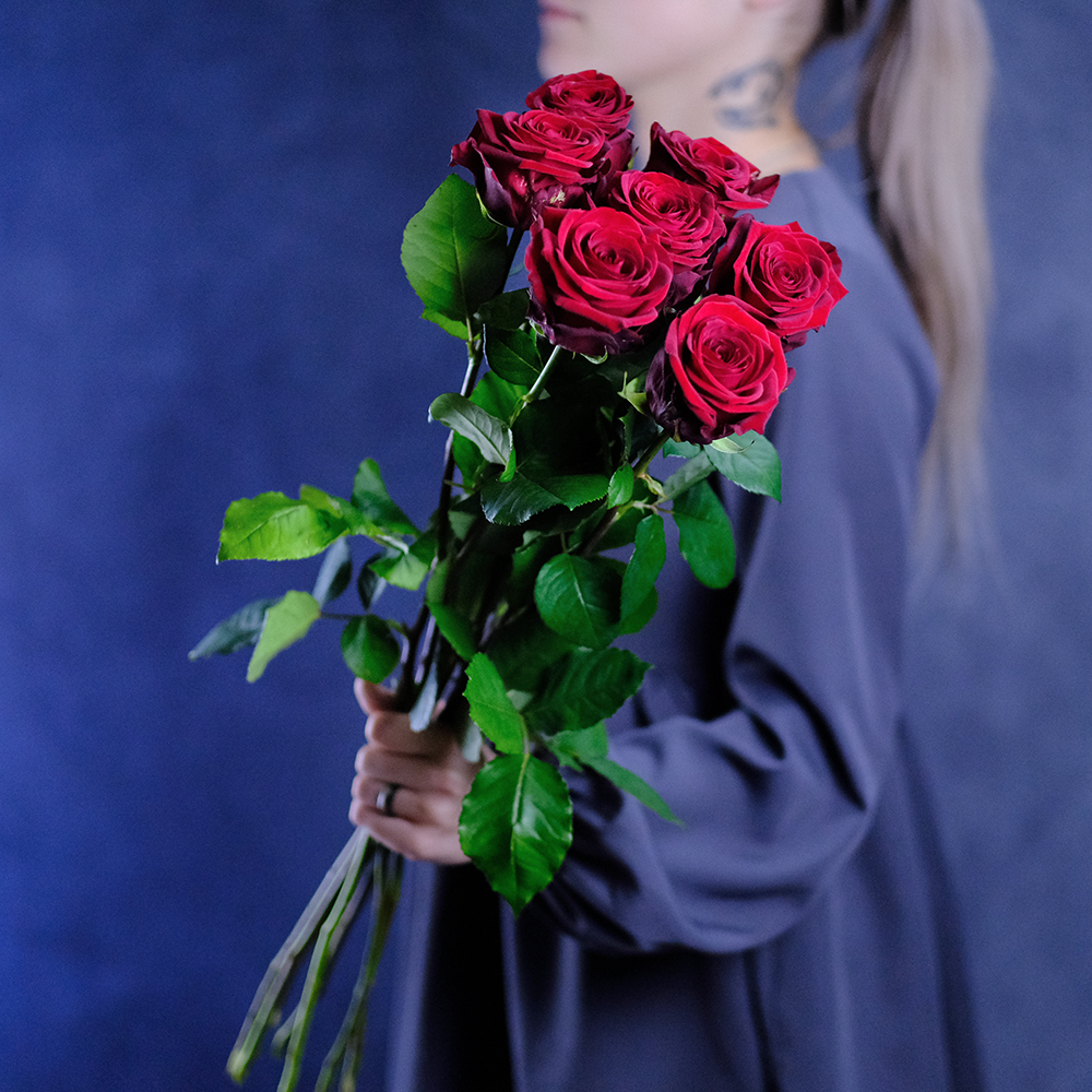 Сорт Red Naomi (Ред Наоми), цвет красный, производство Россия. Возможна замена на другие красные сорта роз: Престиж, Мери Ми, Гран При. Насыщенность цвета, форма бокала, степень раскрытия бутона могут различаться.