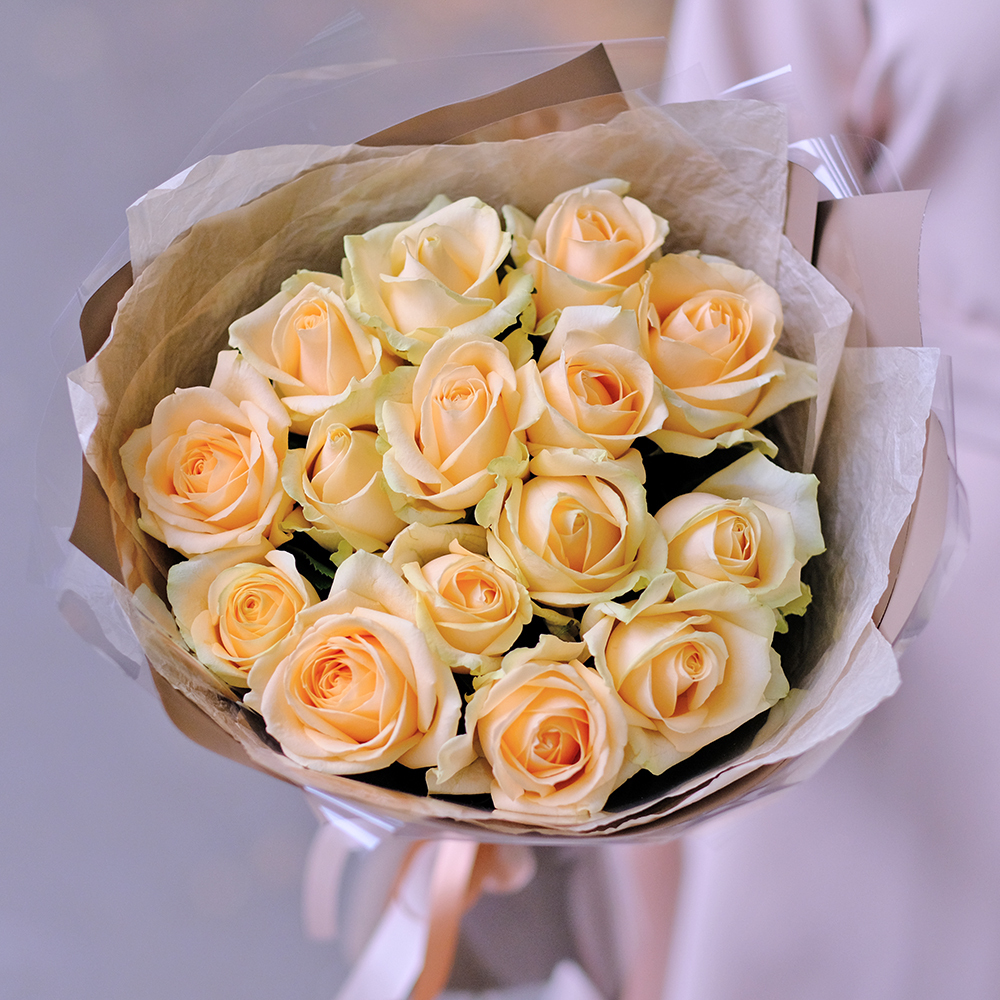 Букет 15 персиковых роз Peach Avalanche