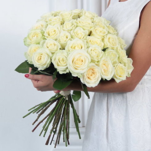 - Состав: 35 роз, сорт Аваланш (Avalanche).