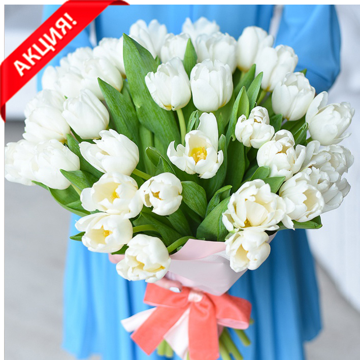 Тюльпан сорт Snowboard (Сноуборд), цвет белый, молочный, возможны цветные прожилки. Оттенки и форма бутона могут различаться.