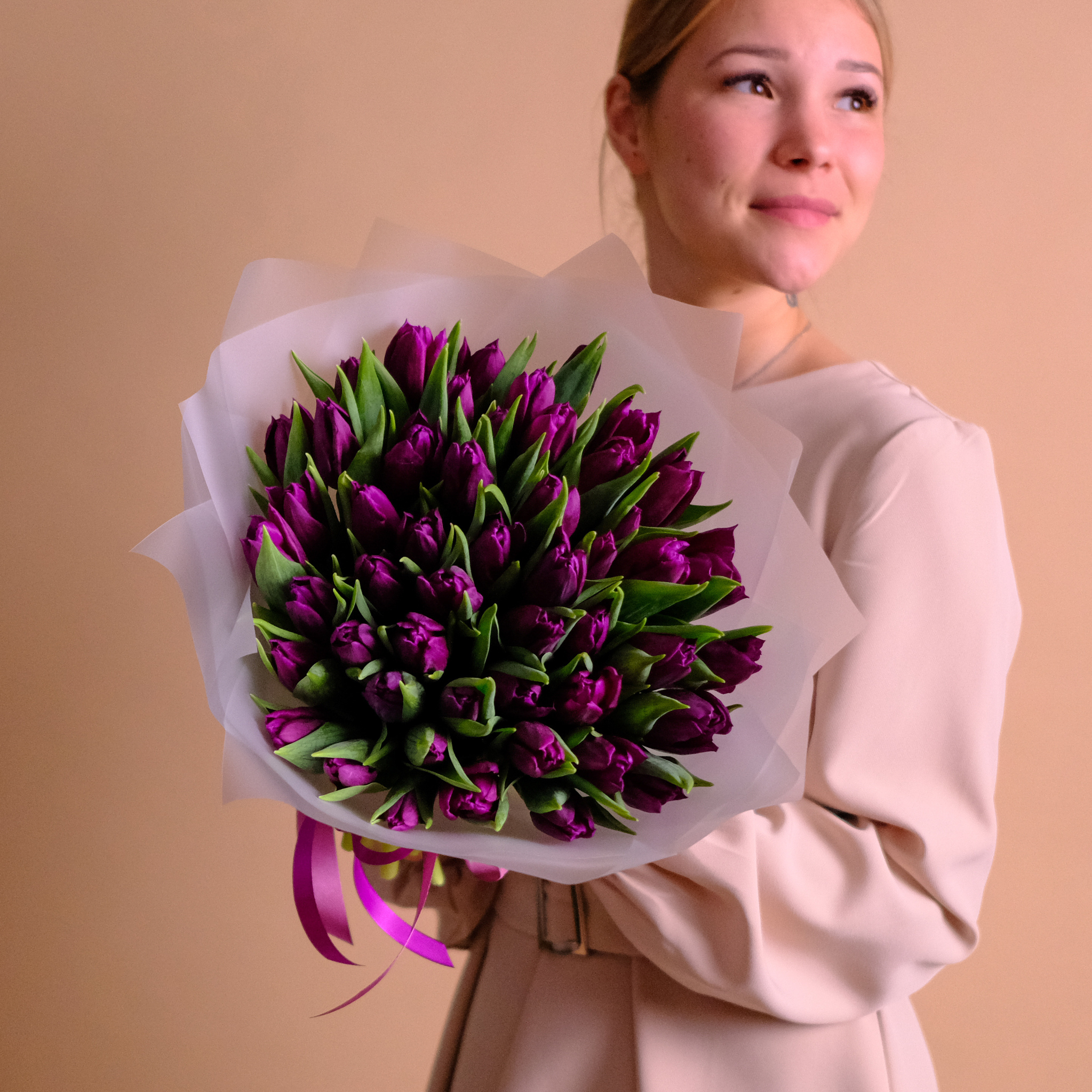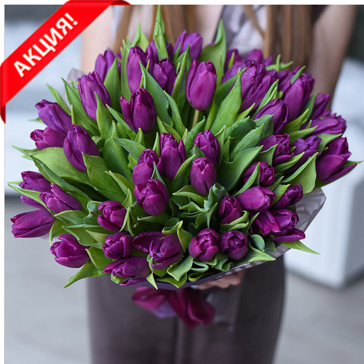 Тюльпан сортовой, цвет пурпурный, фиолетовый, сиреневый. Оттенки и форма бутона могут различаться.