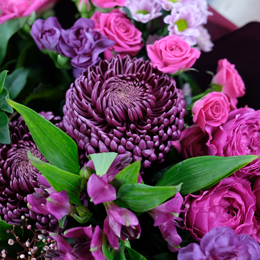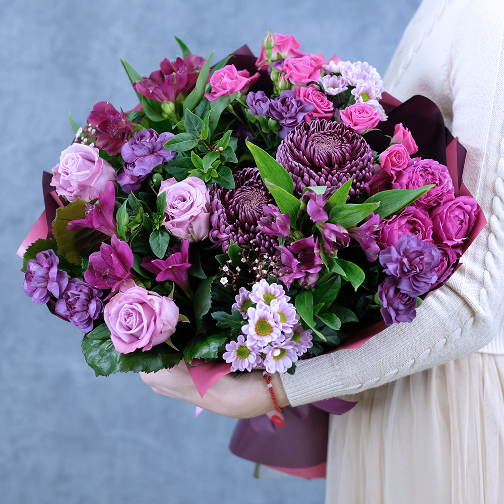 Букет #6 Таинство с премиум-хризантемами и пионовидными розами