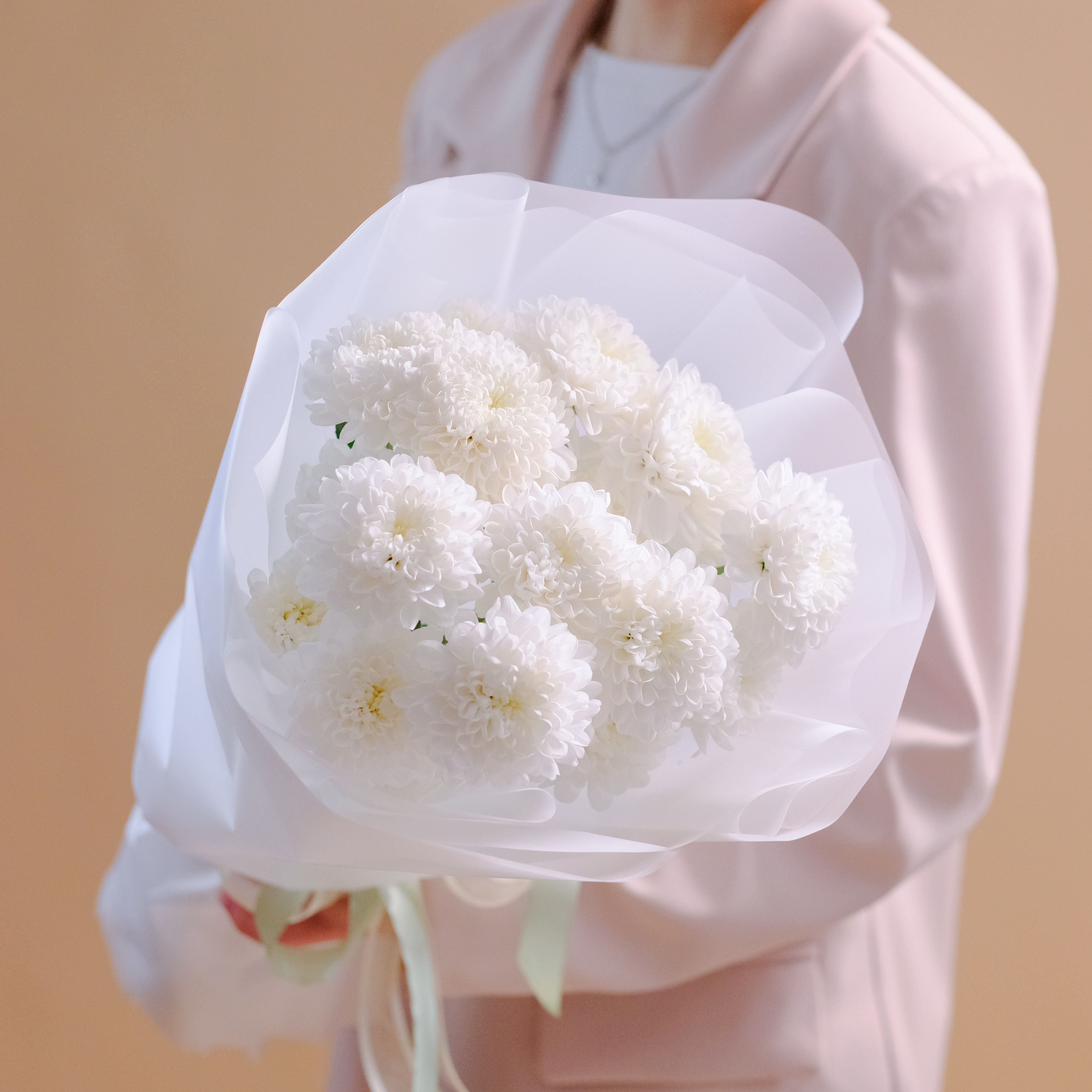 Лёгкий воздушный букет из белых кустовых хризантем Алтай.