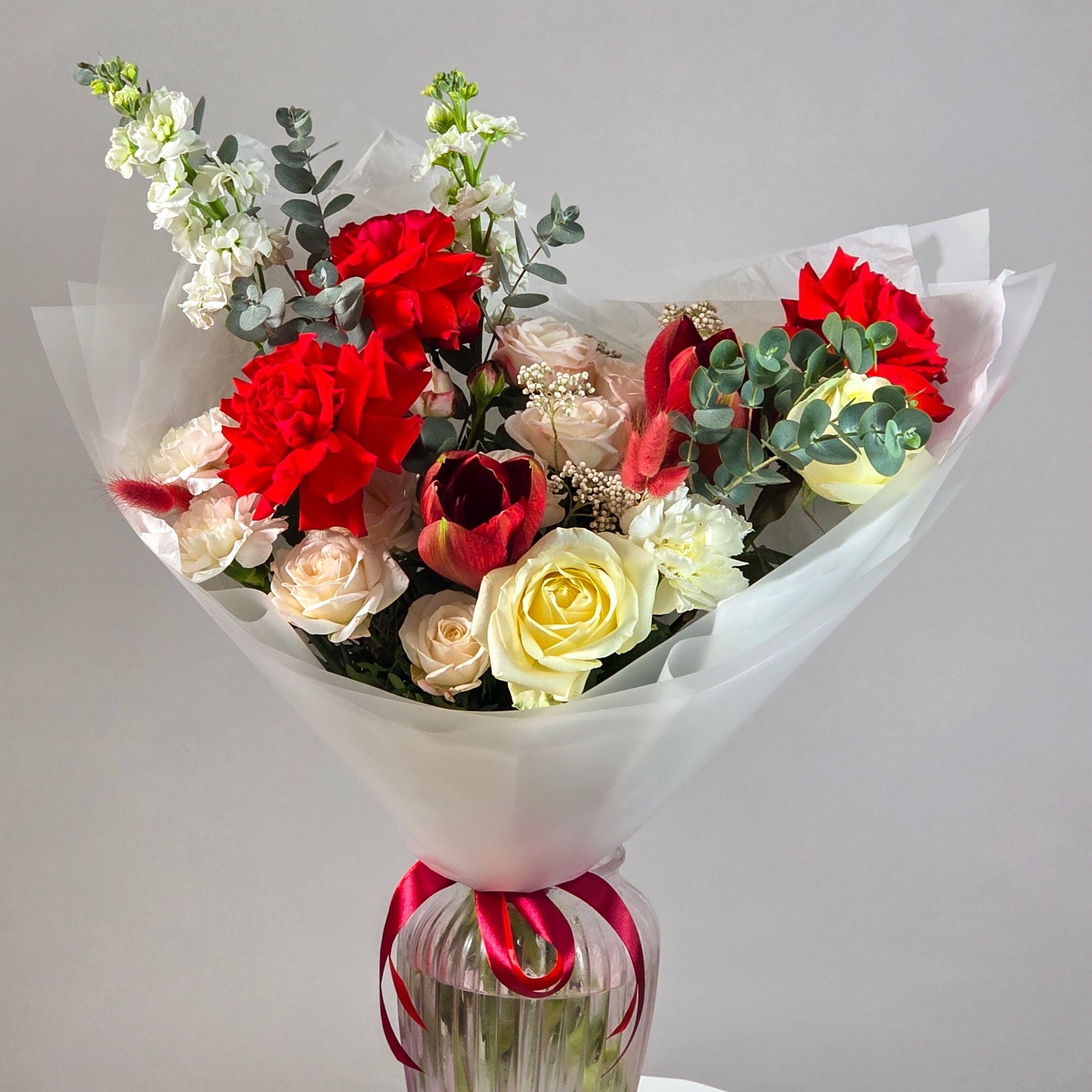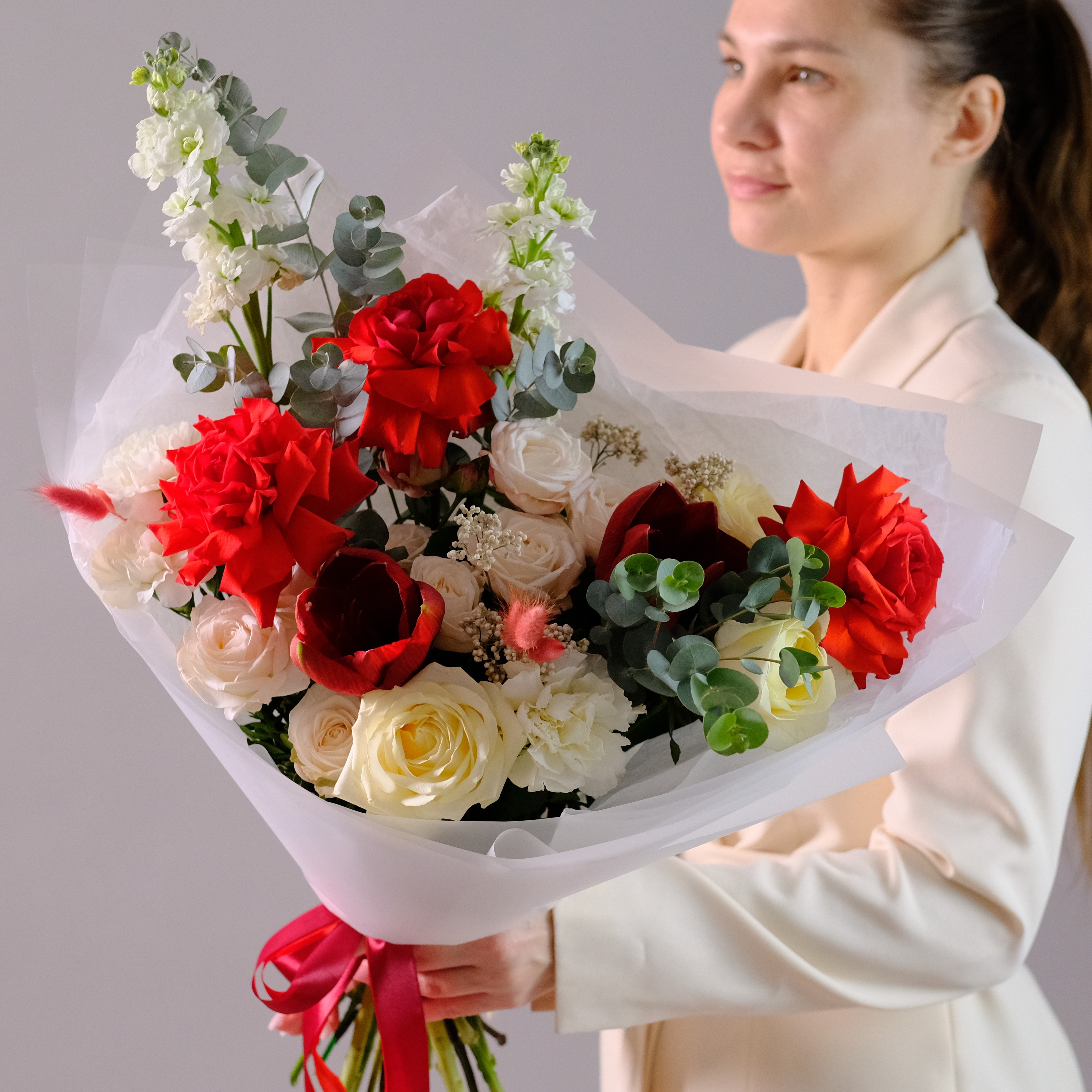 амариллис, маттиола, роза, роза кустовая пионовидная, роза французская