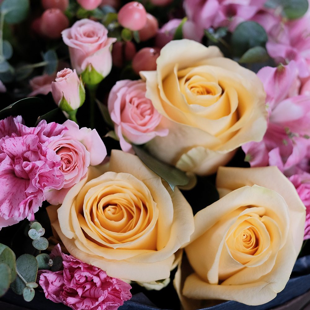 Небольшой романтичный букет с персиковыми розами - символ новых прекрасных отношений.