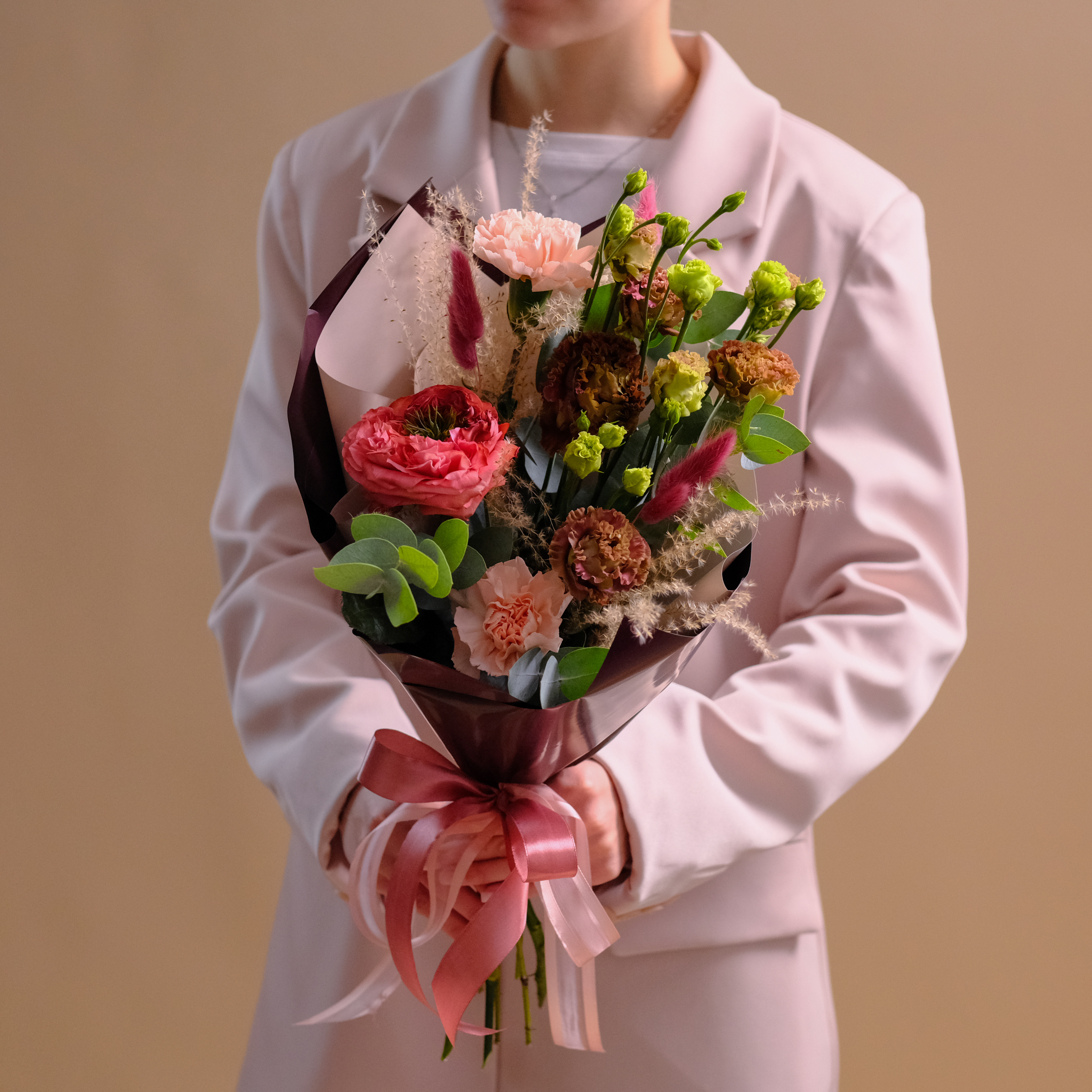 Важно! В случае отсутствия необходимых цветов состав букета определяется флористом на свое усмотрение с сохранением цветовой гаммы, фактуры и стилистики букета в соответствии с Положением. Если у Вас есть особые пожелания, пожалуйста, согласуйте их с флористом по телефону 8 (909) 119-119-2 или с помощью онлайн-консультанта.