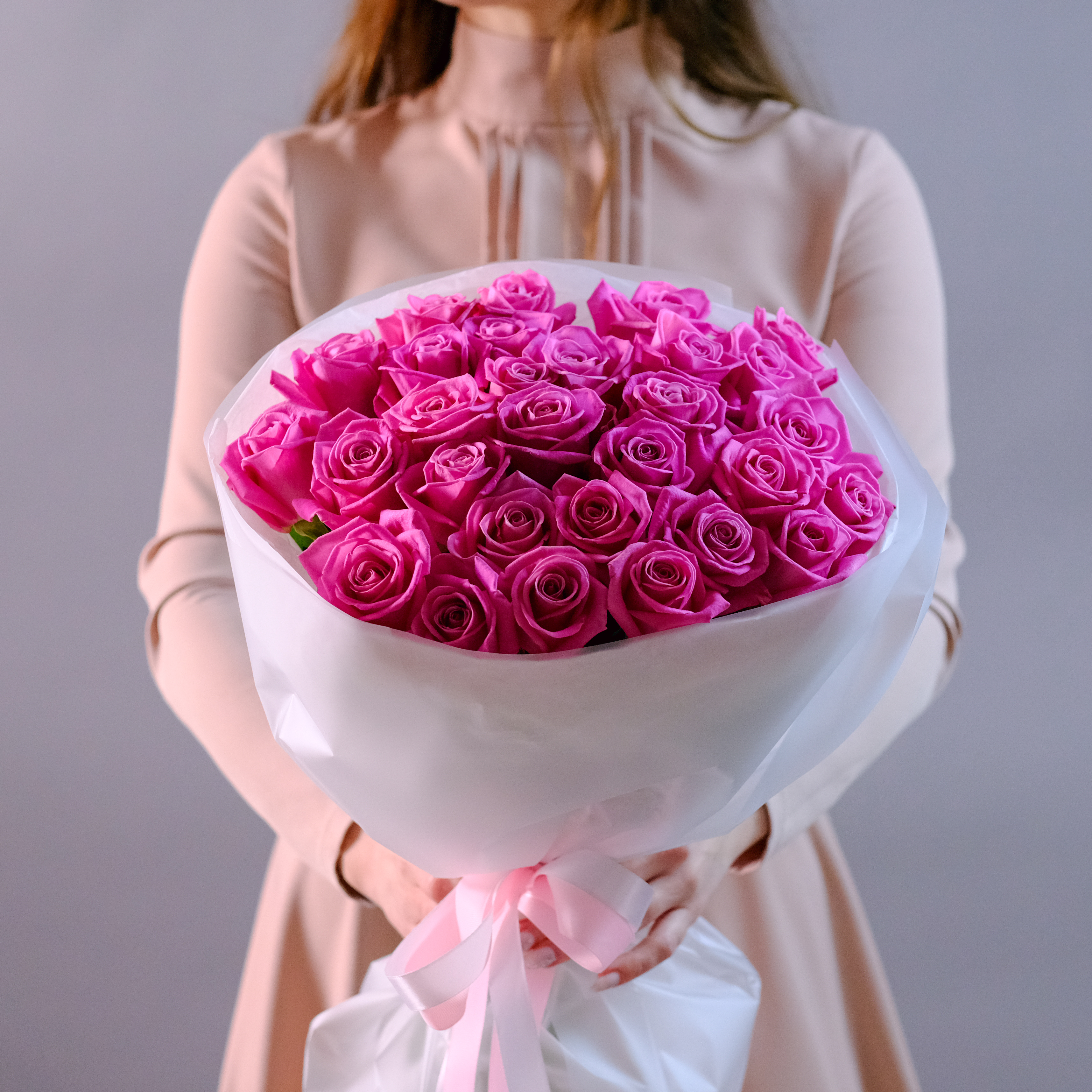 Яркий букет розовых роз #219