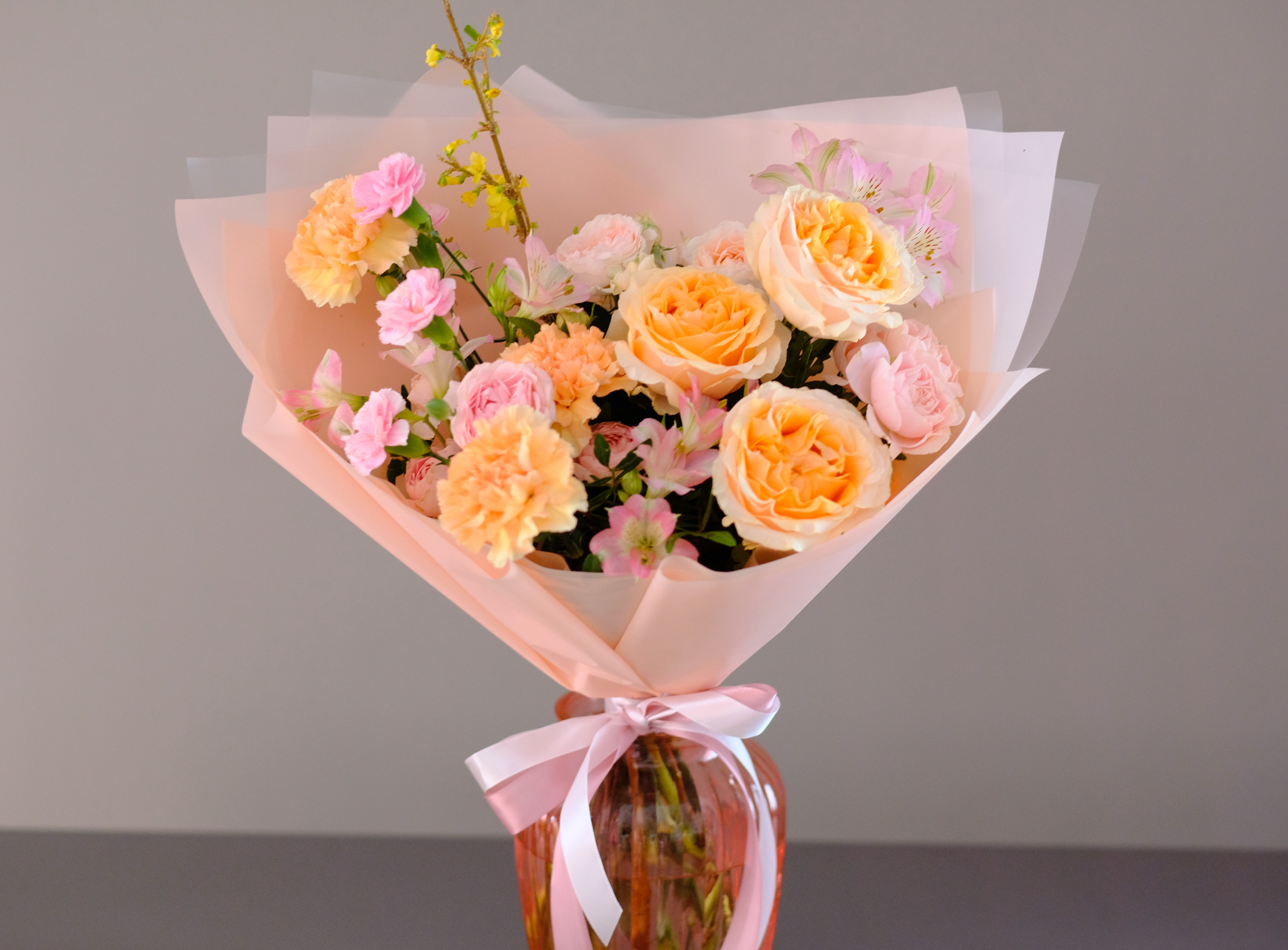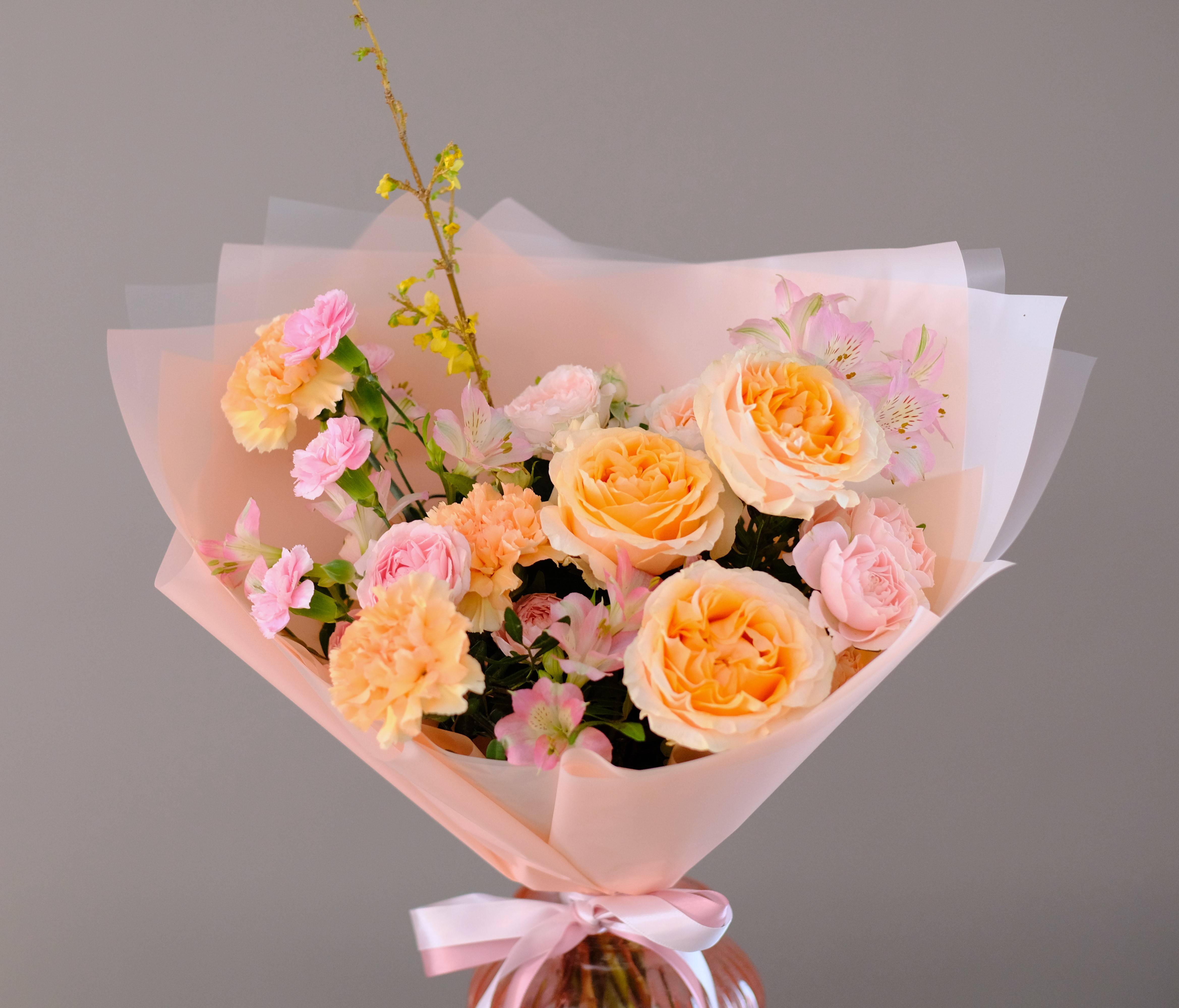 Важно! В случае отсутствия необходимых цветов состав букета определяется флористом на свое усмотрение с сохранением цветовой гаммы, фактуры и стилистики букета в соответствии с Положением. Если у Вас есть особые пожелания, пожалуйста, согласуйте их с флористом по телефону 8 (909) 119-119-2 или с помощью онлайн-консультанта.