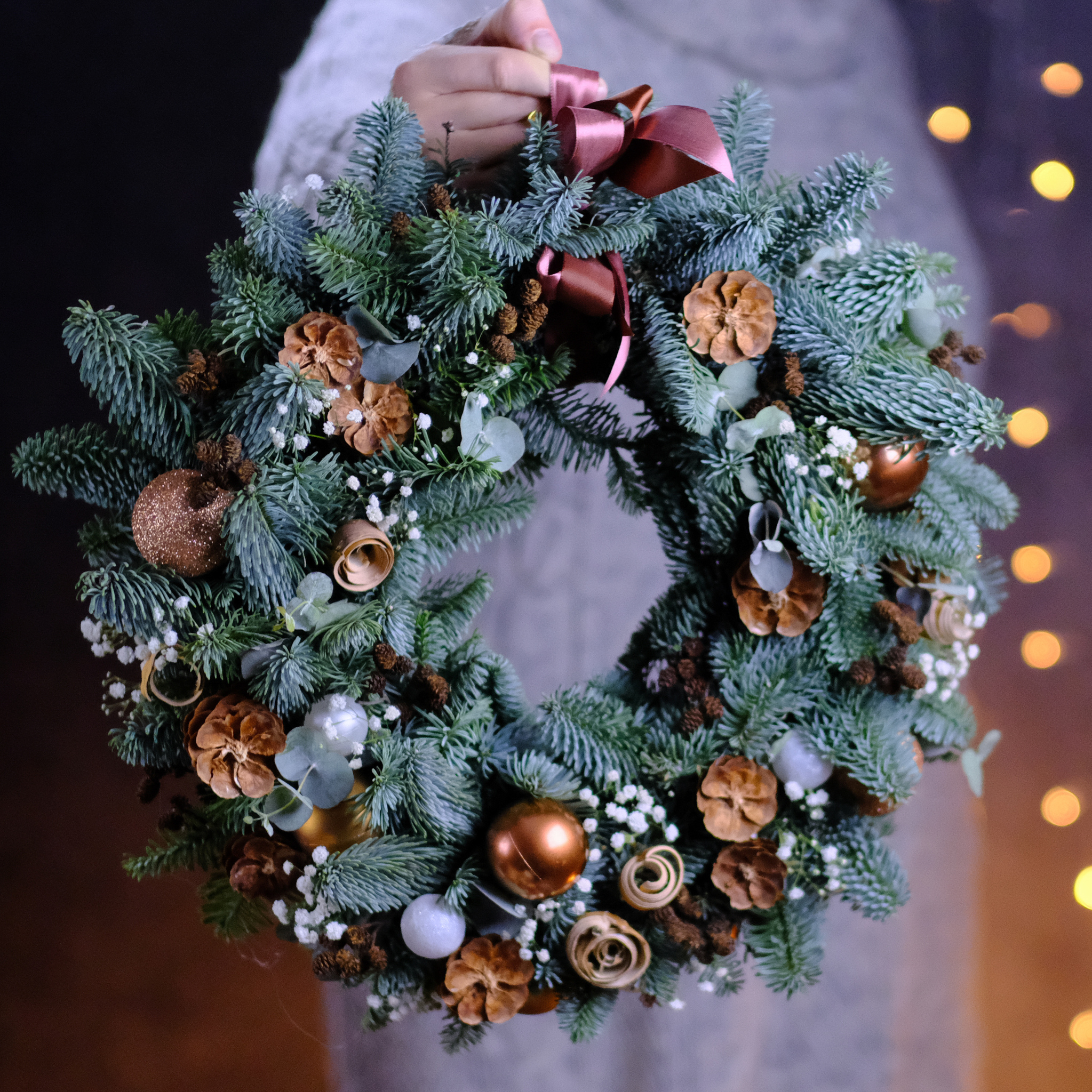 Композиция новогодняя #334 Венок из еловых веток