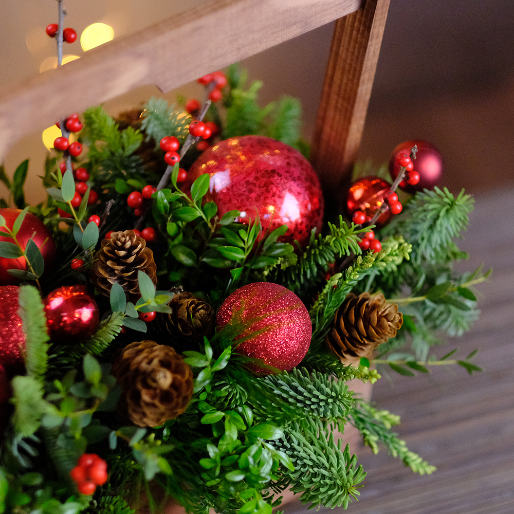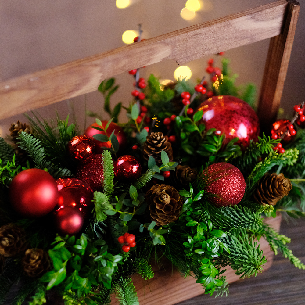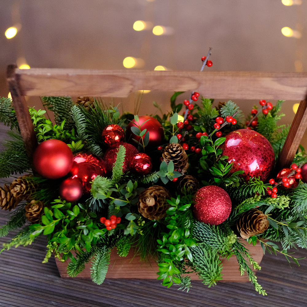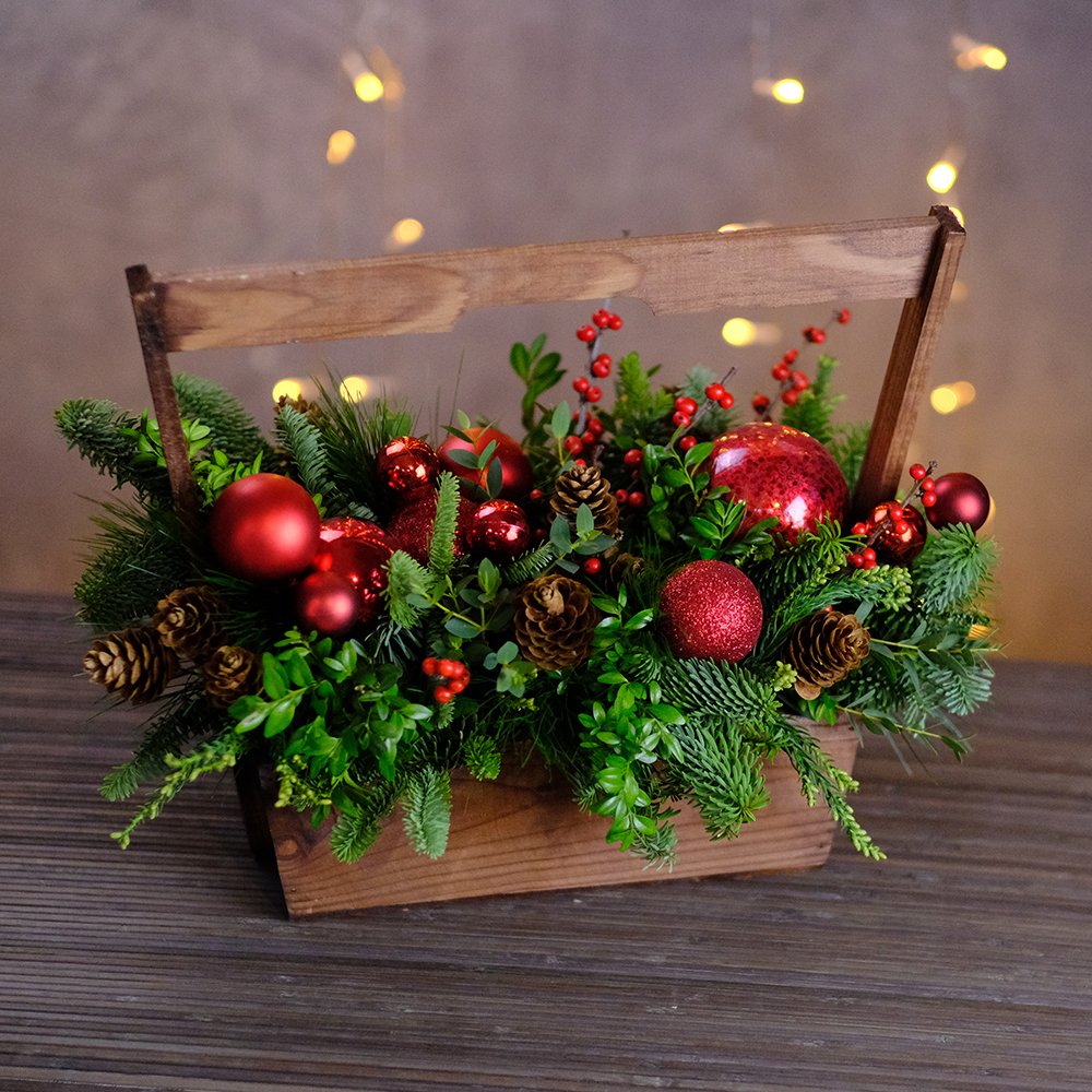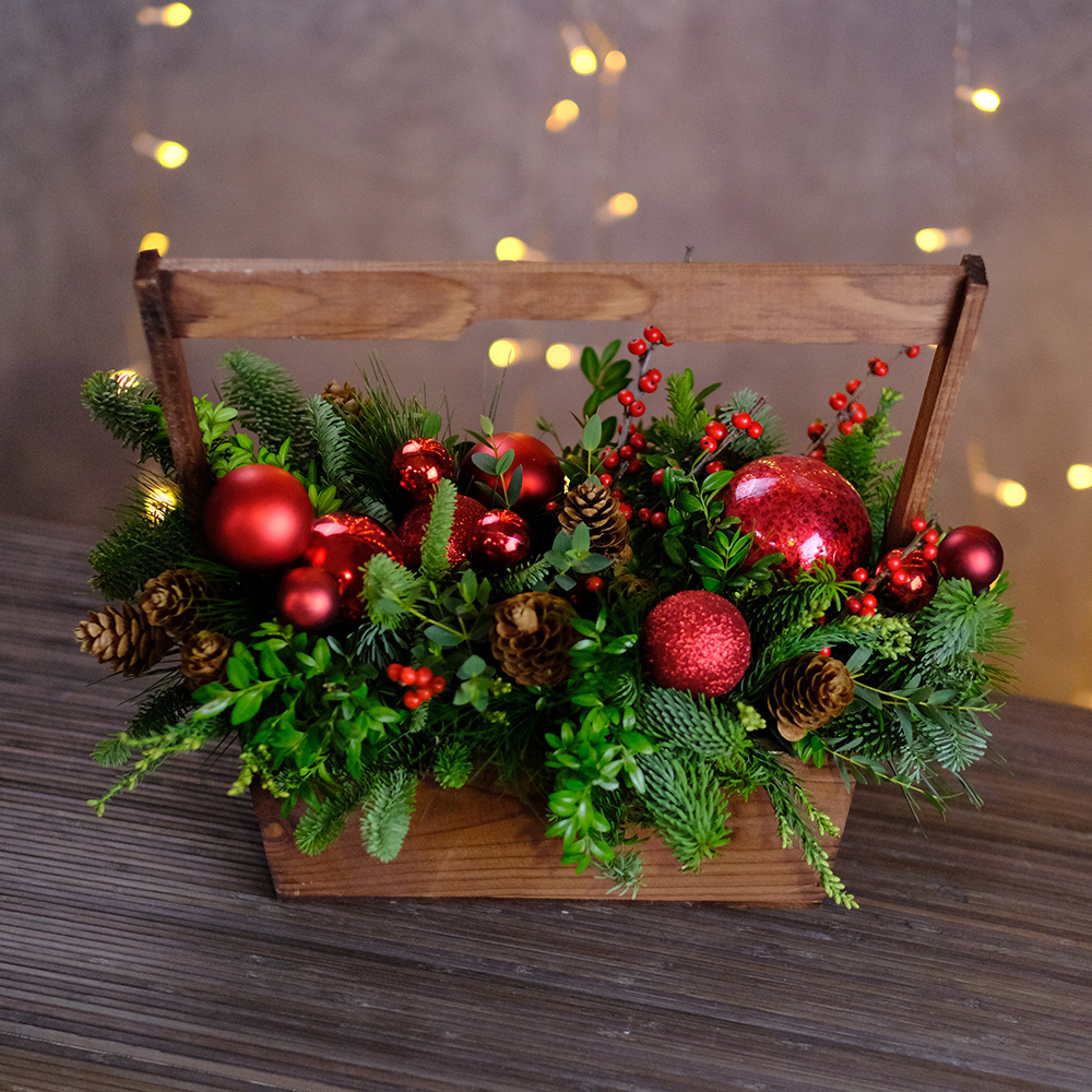 Композиция новогодняя, подарочная. В деревянном ящике.