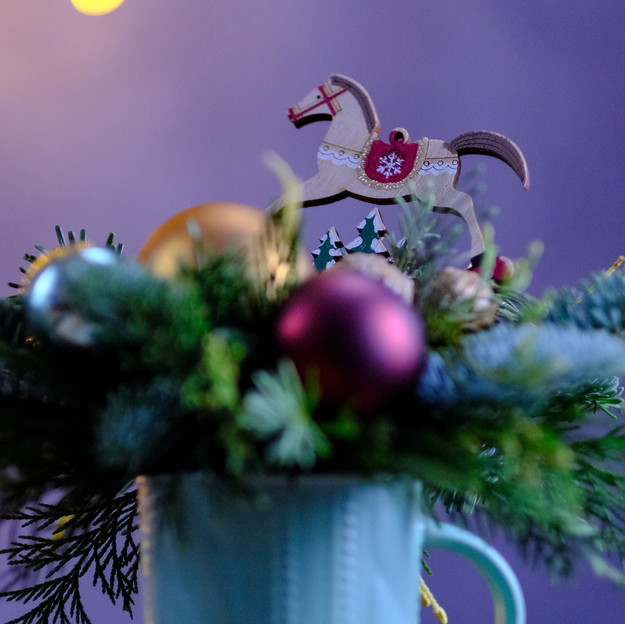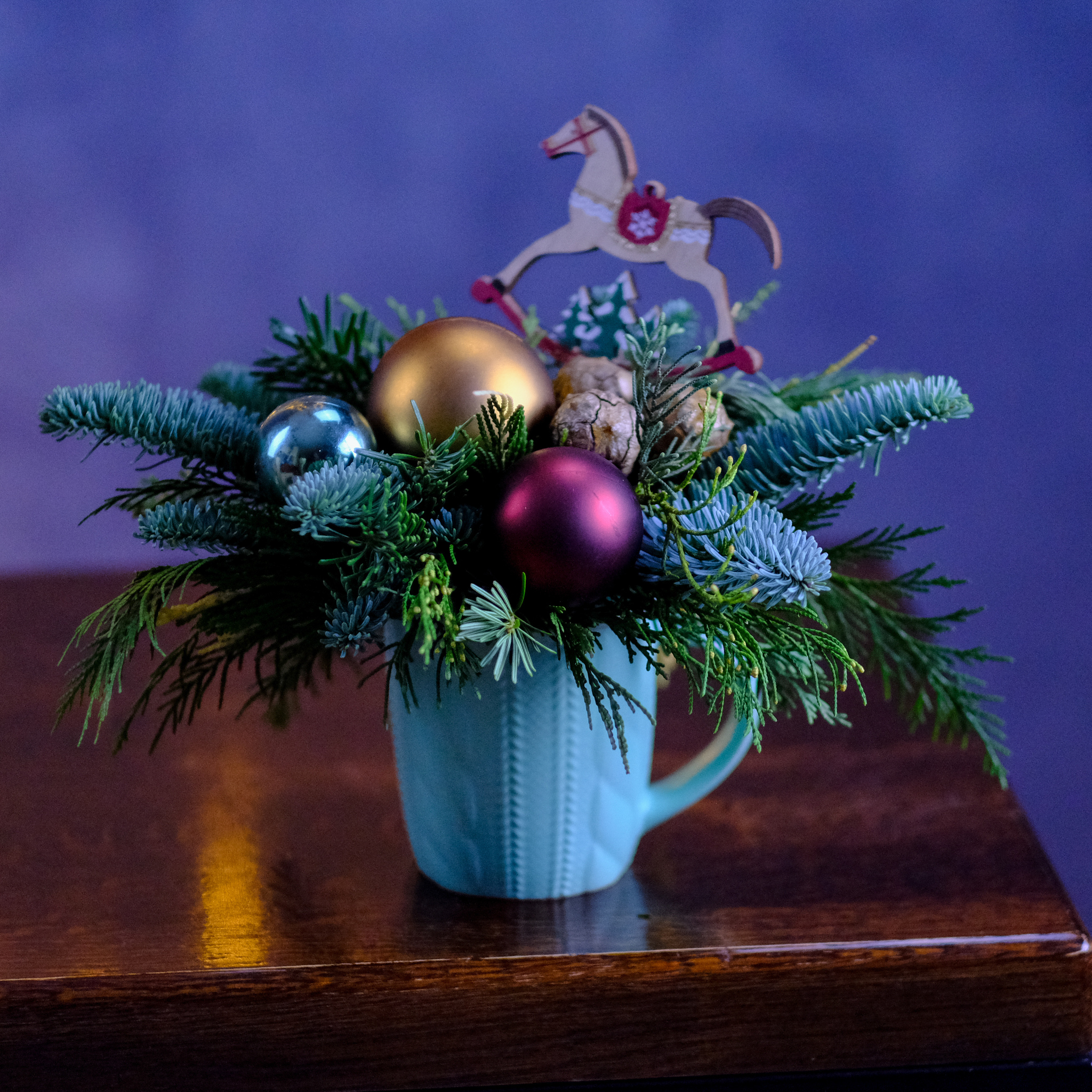 Композиция новогодняя #715 «‎Лошадка» в синей кружке