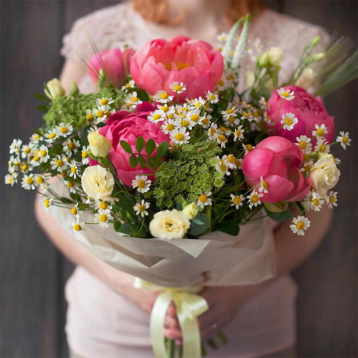 Нежный летний букет словно только что собран в поле. В нем столько любви, нежности и легкости! Его с удовольствием можно подарить и девушке, и маме, и любимому учителю - тому, к кому испытываешь теплые чувства!