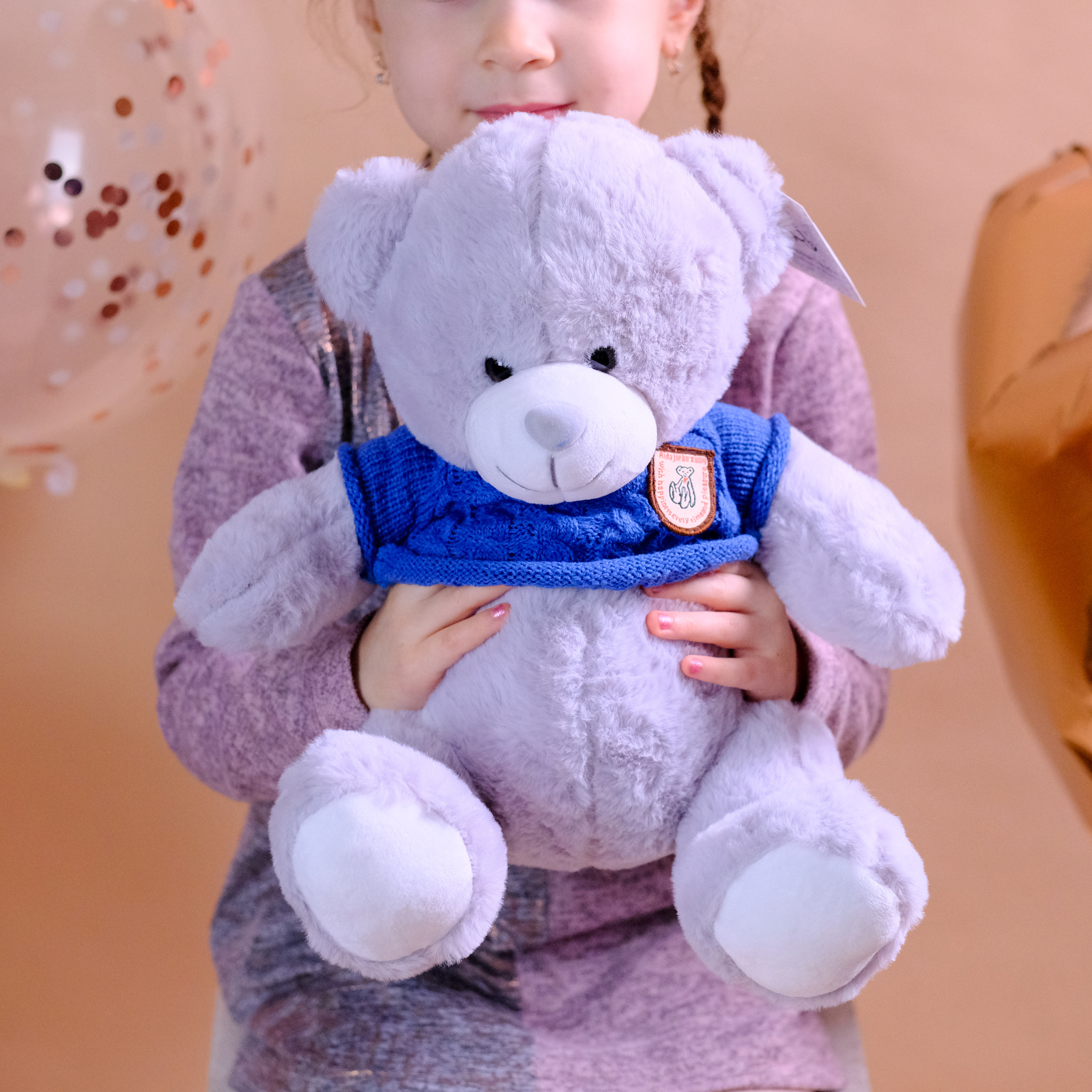 Мягкая игрушка "Медведь в синем свитере" серый (Мишка)