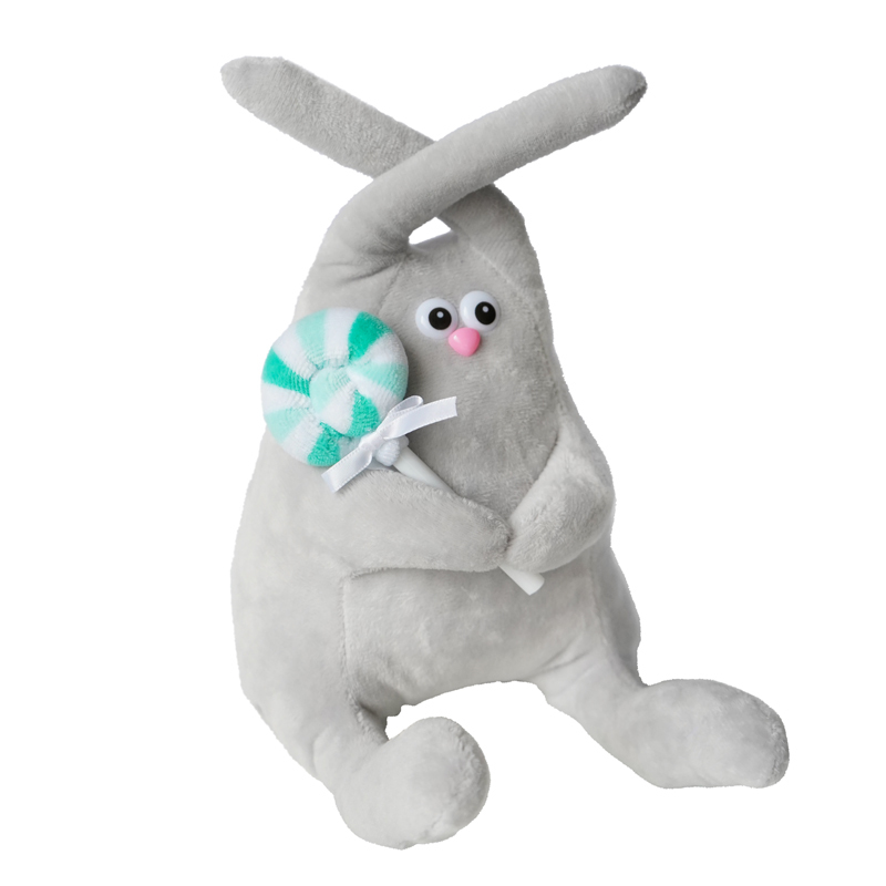Мягкая игрушка "Ушастик с леденцом" (заяц, зайчик)