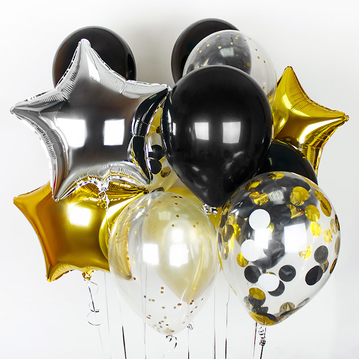 Цвет - желтый, черный, золото, серебро. Оттенки и рисунки на шарах могут отличаться от фотографии.