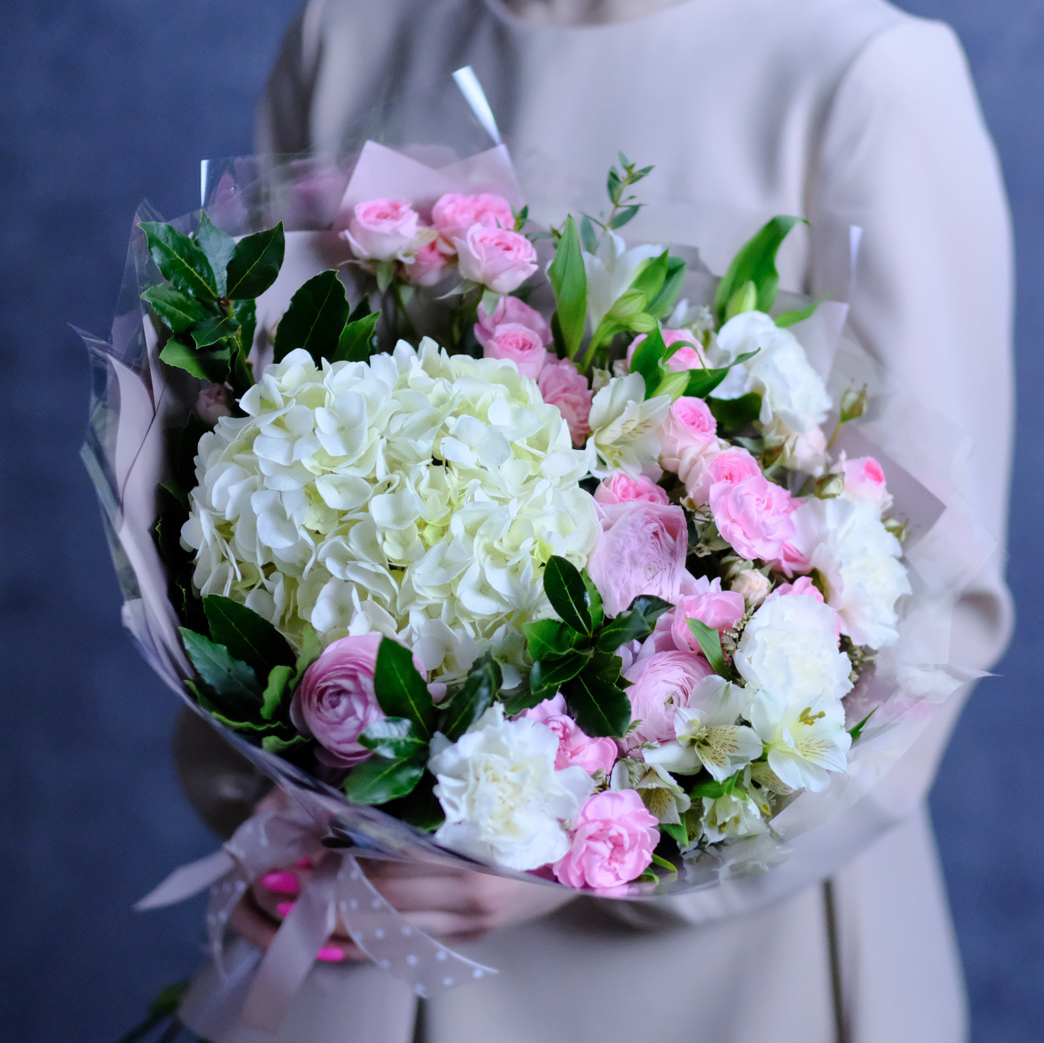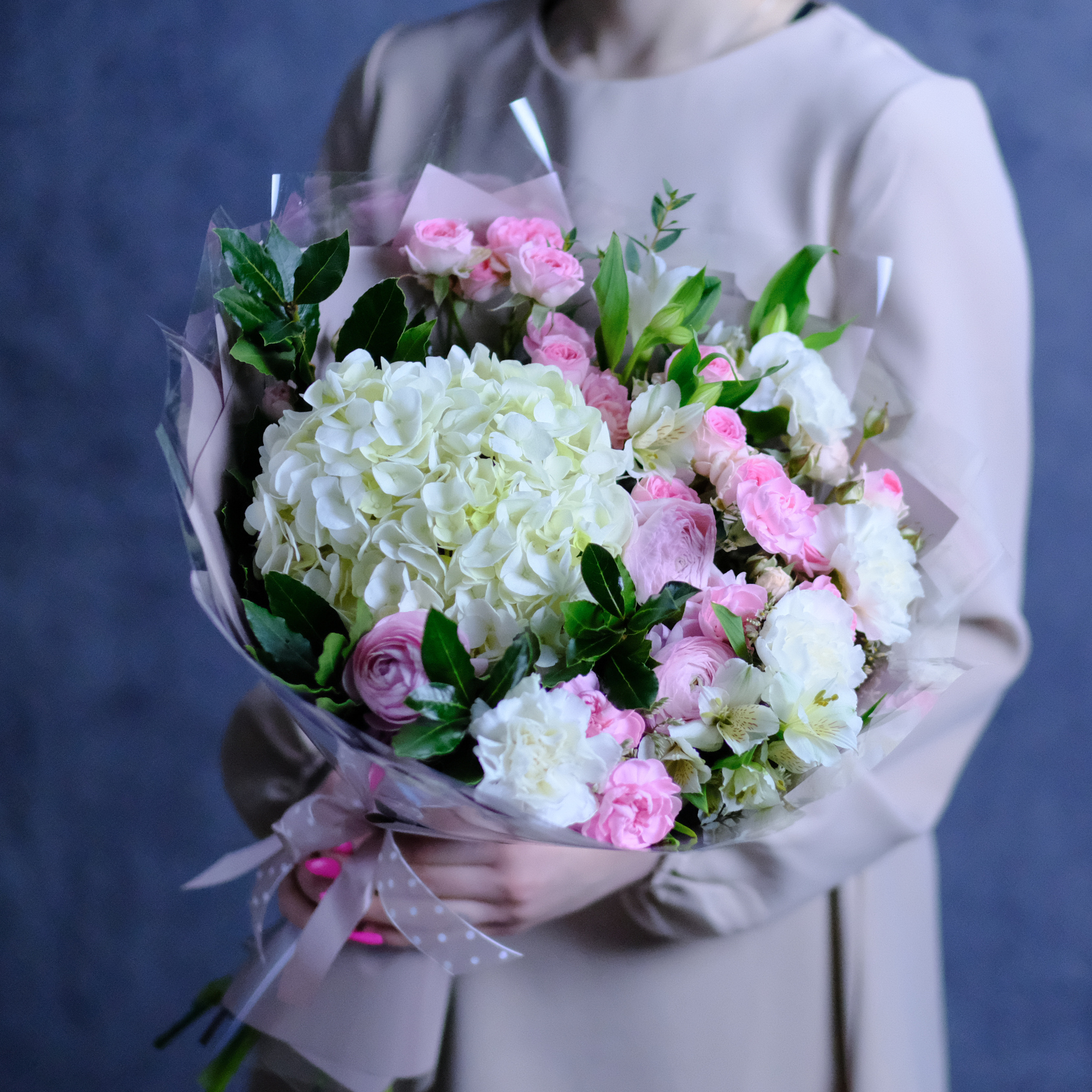 Нежный букет #482 с гортензией и ранункулюсами