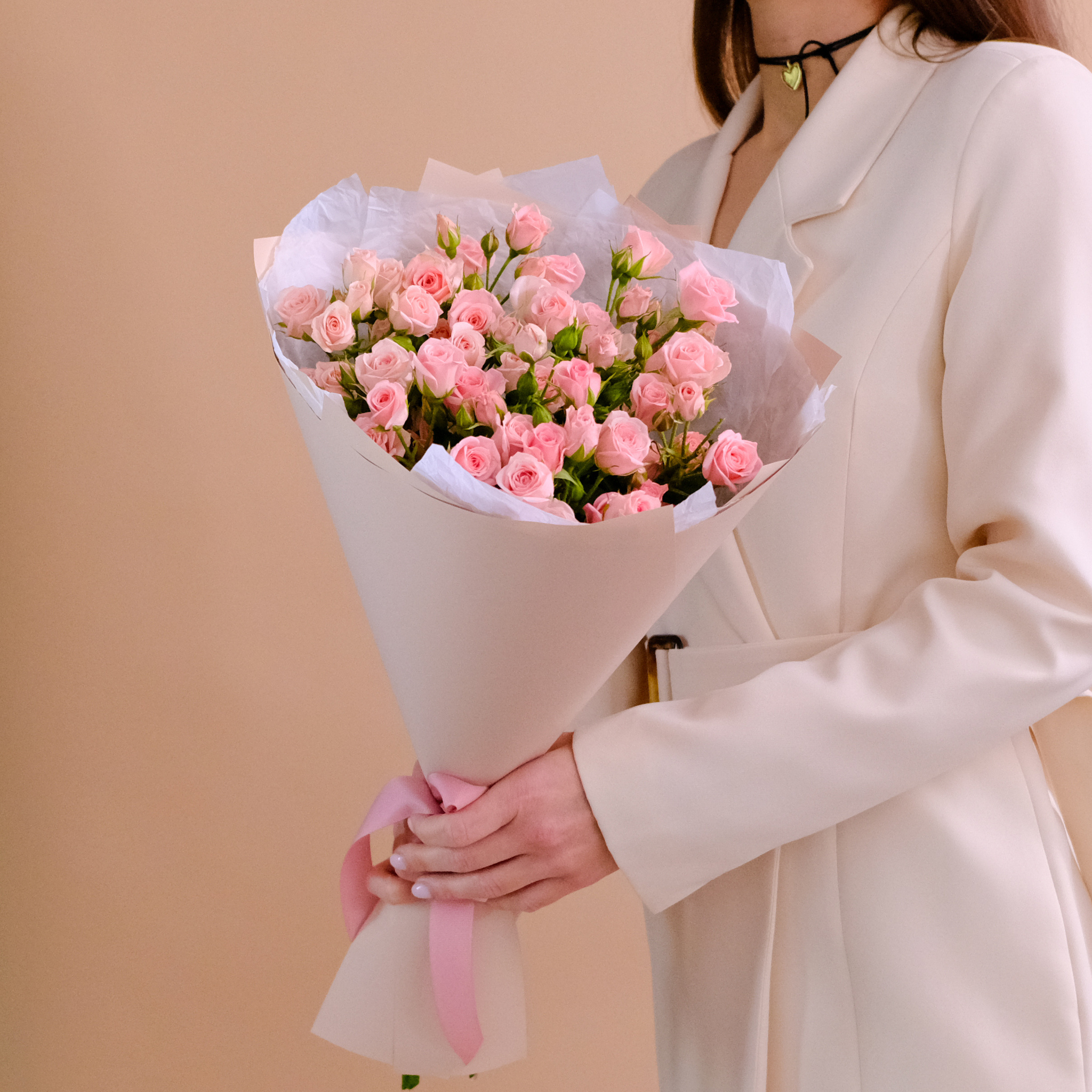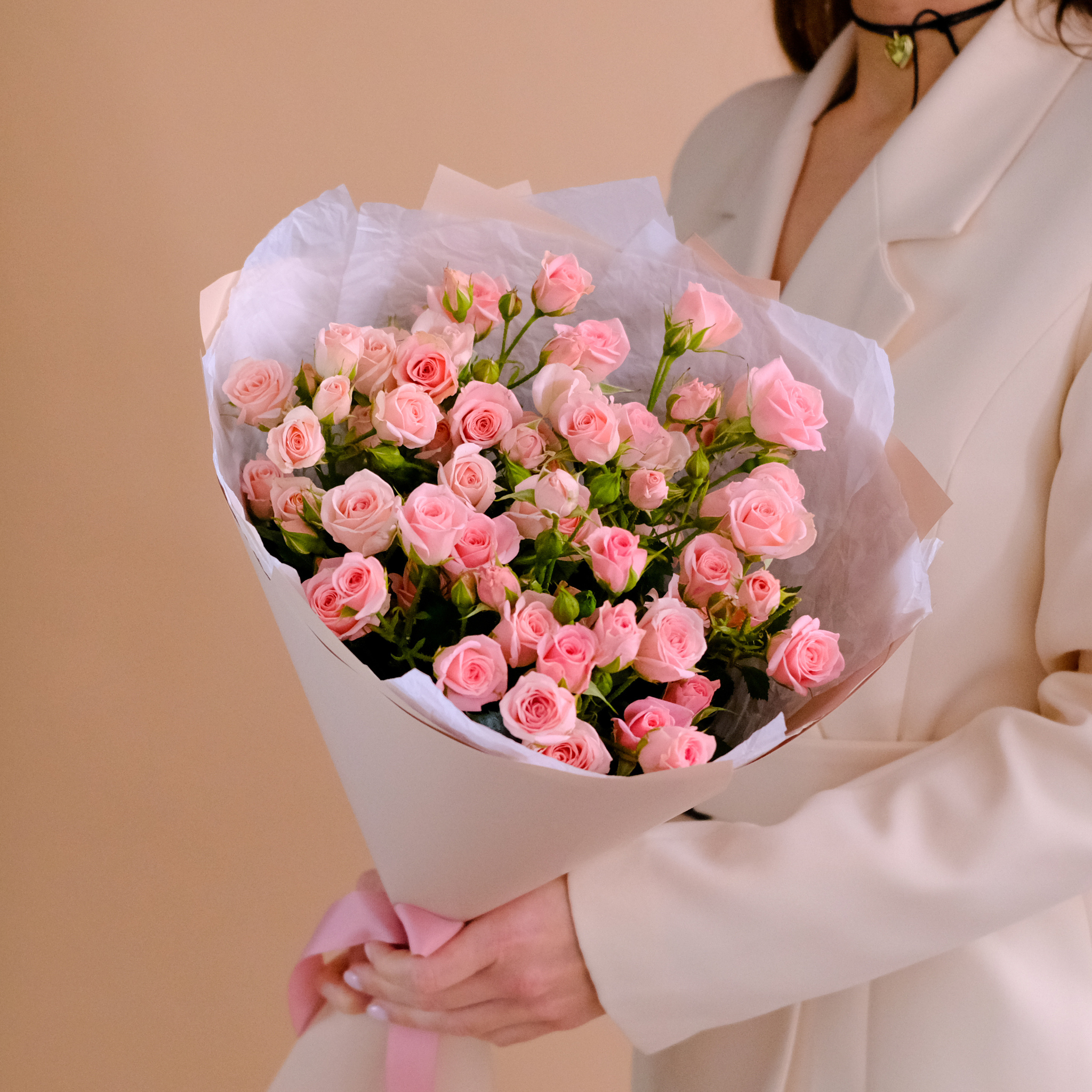 Нежный букет кустовых роз #970
