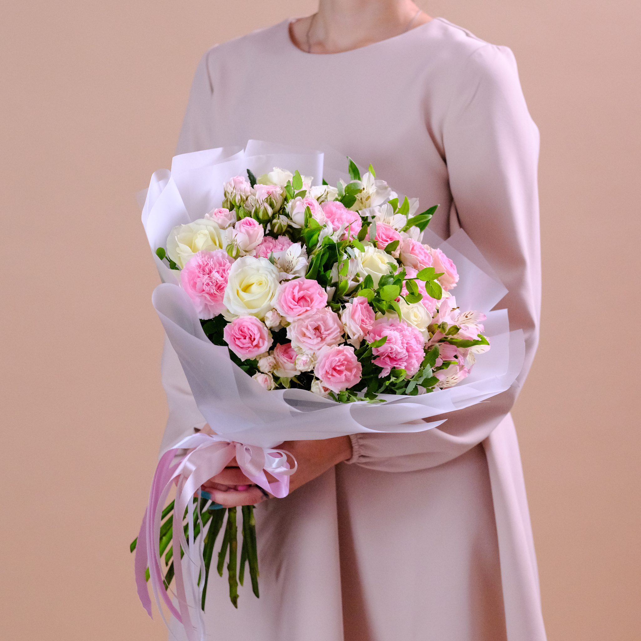 Важно! В случае отсутствия необходимых цветов состав букета определяется флористом на свое усмотрение с сохранением цветовой гаммы, фактуры и стилистики букета в соответствии с Положением. Если у Вас есть особые пожелания, пожалуйста, согласуйте их с флористом по телефону 8 (909) 119-119-2 или с помощью онлайн-консультанта.