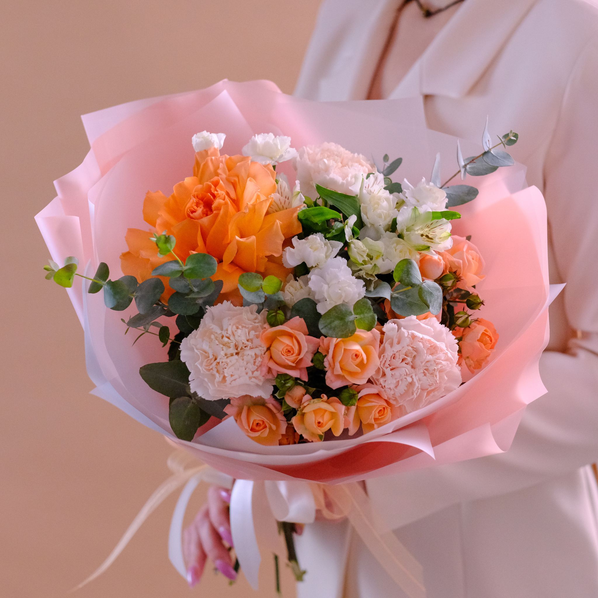 Нежный букет с французской розой Амаретто #169 (готовый букет)