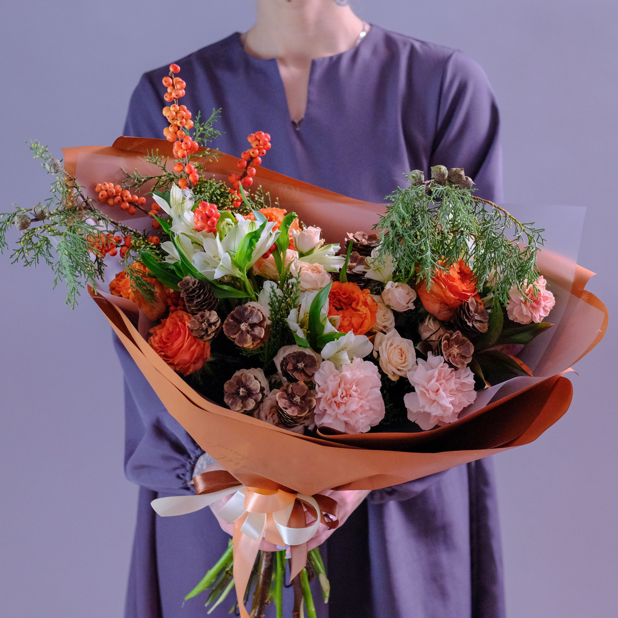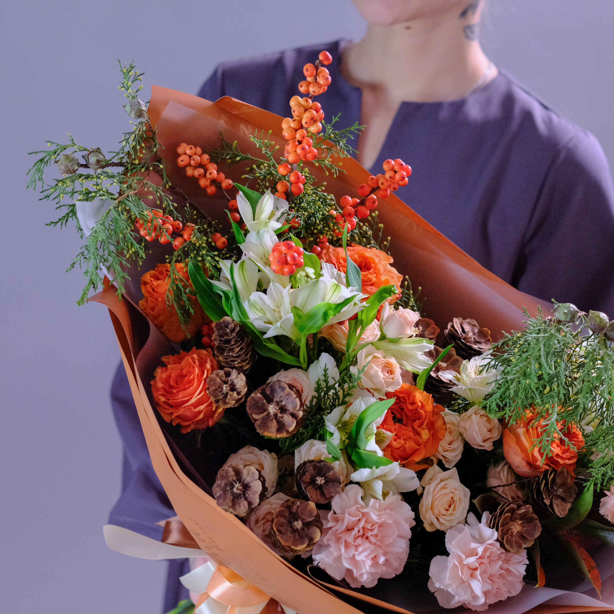 Важно! В случае отсутствия необходимых цветов состав букета определяется флористом на свое усмотрение с сохранением цветовой гаммы, фактуры и стилистики букета в соответствии с Положением. Если у Вас есть особые пожелания, пожалуйста, согласуйте их с флористом по телефону 8 (909) 119-119-2 или с помощью онлайн-консультанта.