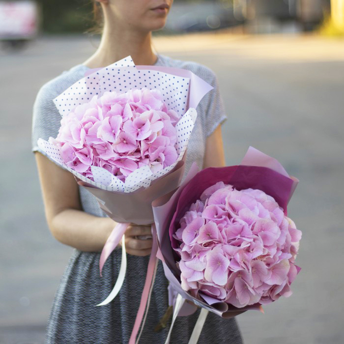 Мини-букет из одной ветки гортензии в стильном оформлении.