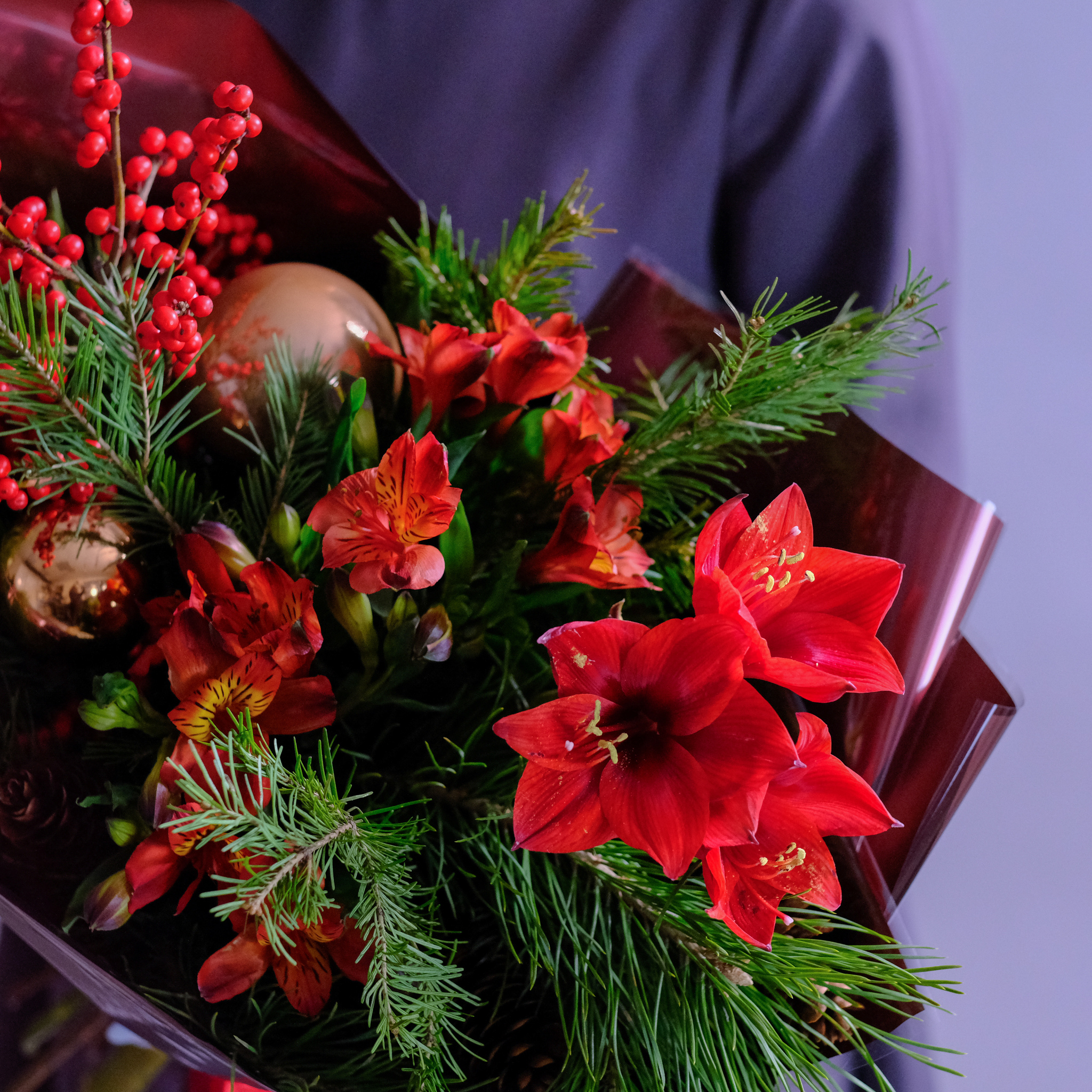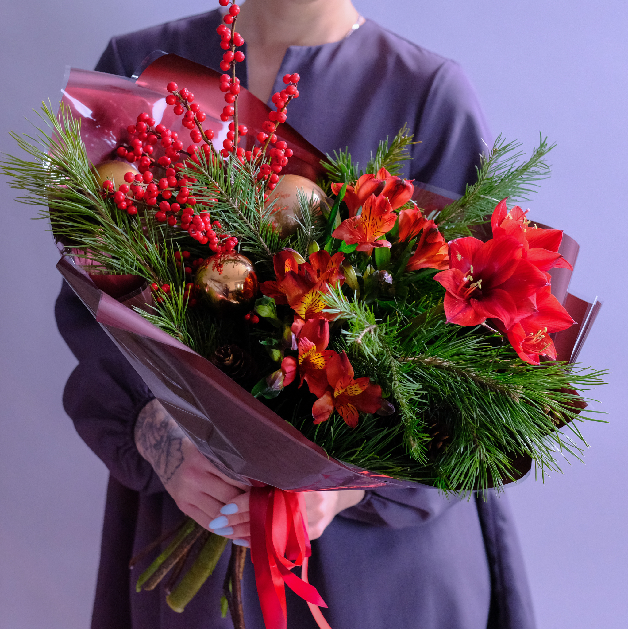 Яркий зимний букет с амариллисом