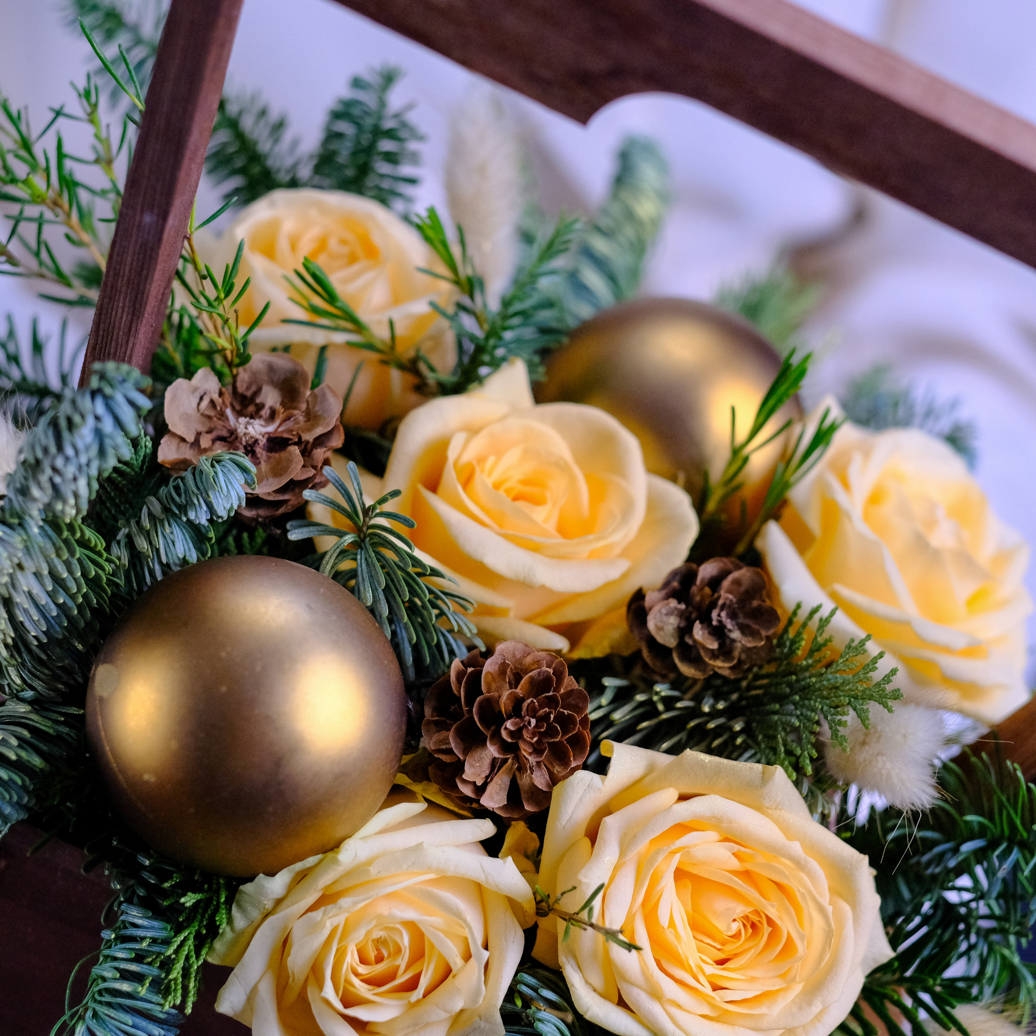 Зимняя композиция с персиковыми розами #688
